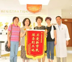 南京市住房和城鄉建設系統計劃生育協會會長毛醫生等一行來到南京建國醫院,送上了“服務到工地 關愛新市民”的大紅錦旗