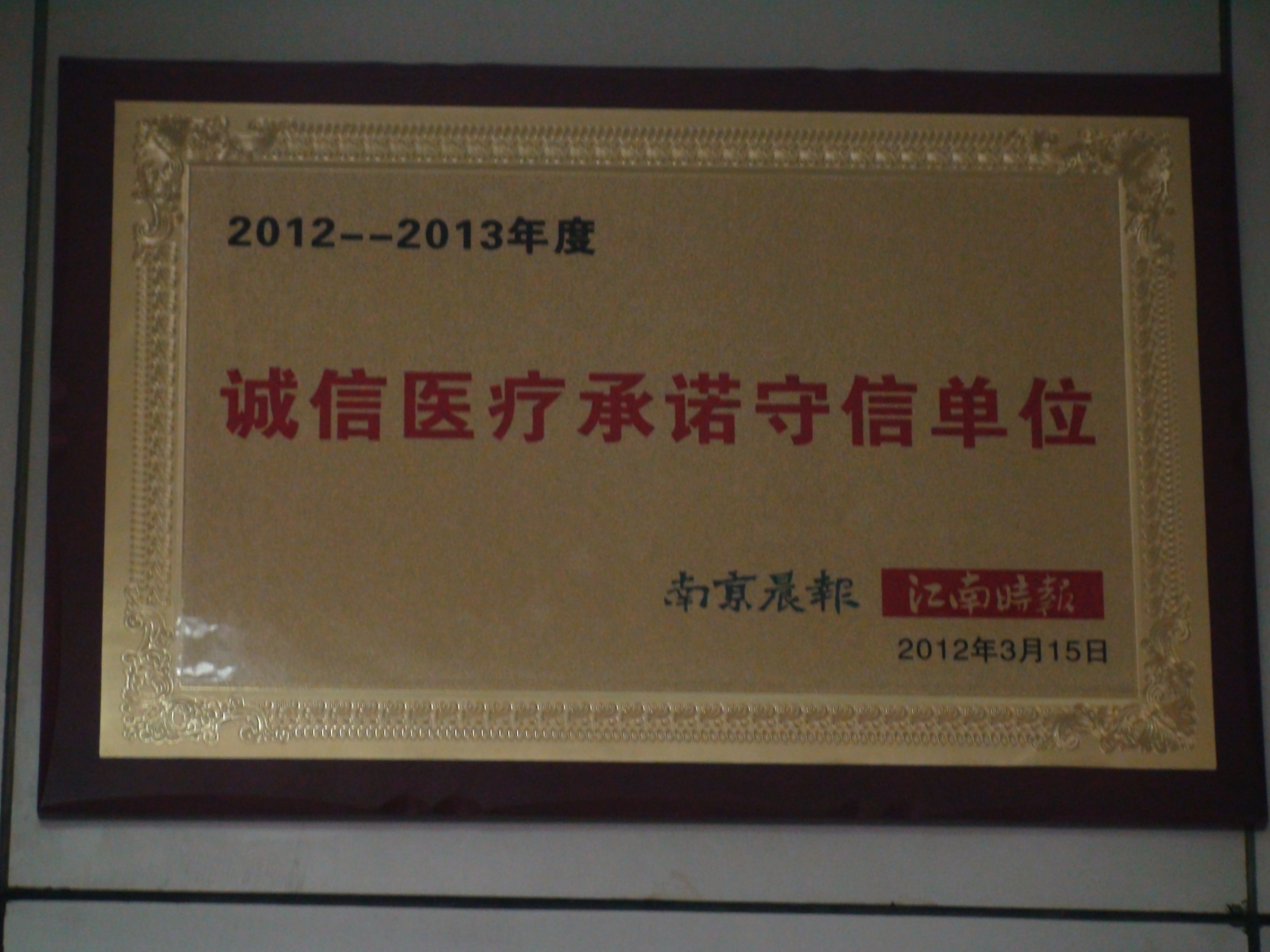 南京大報刊媒體《南京晨報》、《江南時報》在3·15消費者日授予建國醫院一家專科醫院“誠信醫療承諾守信單位”。